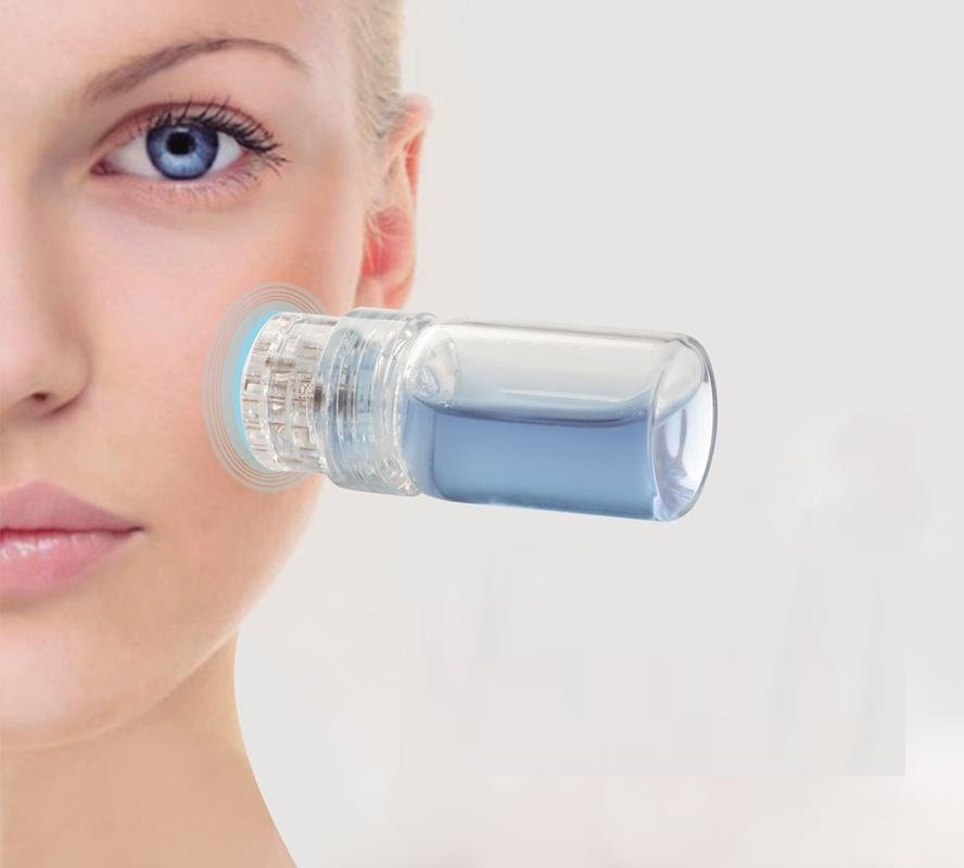 Serum application supports healthy skin metabolism, softens skin roughness and improve the appearance of age spots and evens out pigmentation. The applicator slowly releases the Amniotic Hydra Serum while the nanotechnology gently disrupts the outer layer of your skin, generating micro channels for the powerful amniotic serum to penetrate. Applicator produces 12000 vibrations per minute that gently taps the skin allowing our Wrinkle Clear Serum to penetrate deeper into the lower levels of the dermis. The relaxing massaging action tones the facial muscles as it increases bloods flow for a vibrant radiant complexion and improved lift.